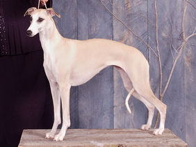 Born from Jetstream’s second litter, Tango was honoured with a Best in Show award (and her Championship) at just one year of age, on her first birthday! Elegant, sleek, and graceful, Tango cemented our love of fawn Whippets. Dam of "Maddie" and "Isabelle," she is also related to our young "Kennera," through her sire, Ketil (also from Poland).